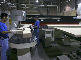 Will handle up to 4” x 61” x 169” sheet stock material clad with a variety of surface materials such as melamine, paint, paper, and HPL. An office-based, optimizing system that enables the saw operator to obtain the best yields is utilized for each saw system.